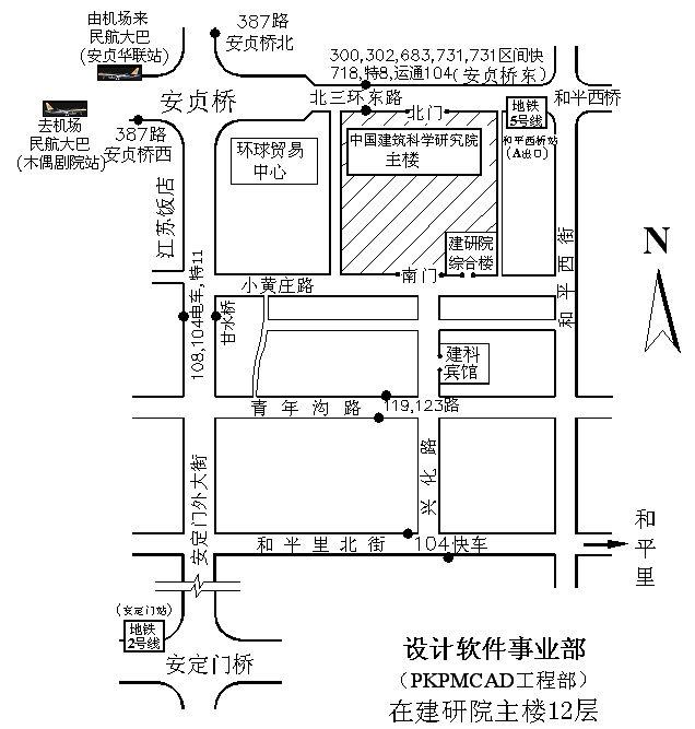 建研院北门(正门):北三环东路30号,安贞桥向东200米路南。
