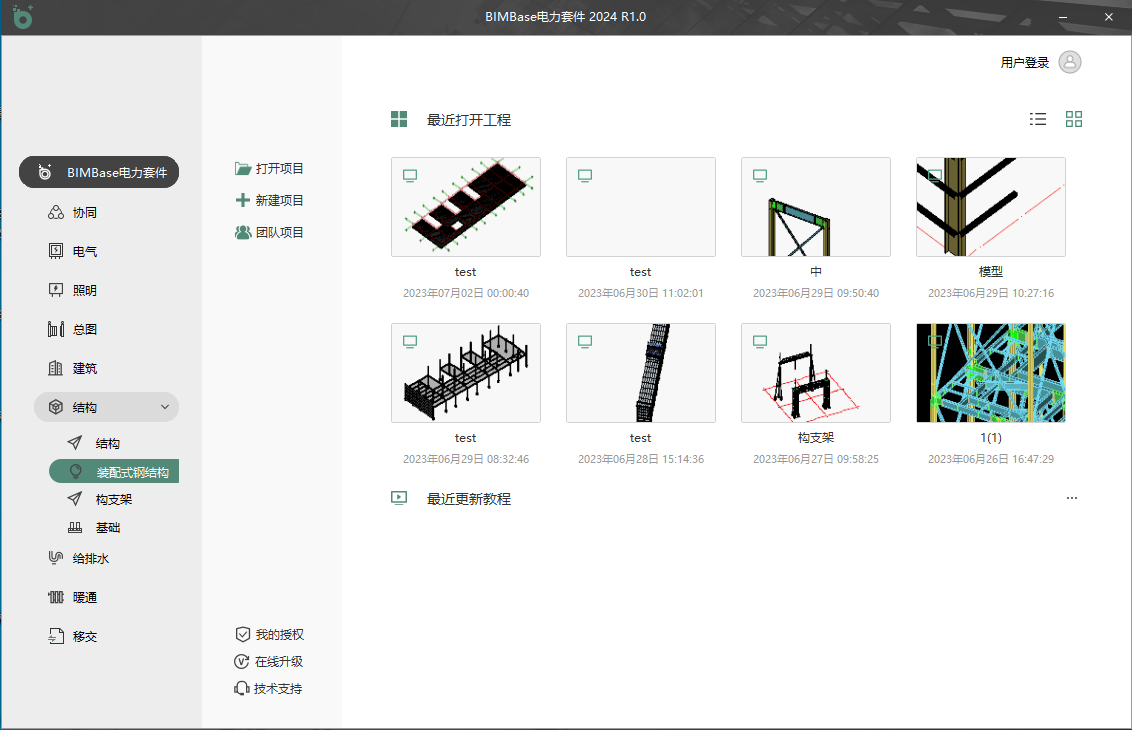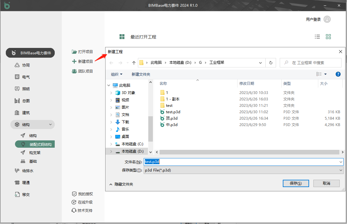 程序启动界面如图1.1所示,用户应将启动环境选为“装配式钢结构”以启动PKPM-DLPS,并可根据需要,选择“新建工程项目”(图1.2)、“打开工程项目”或“打开团队项目”(图1.3,适用于协同工作模式)。