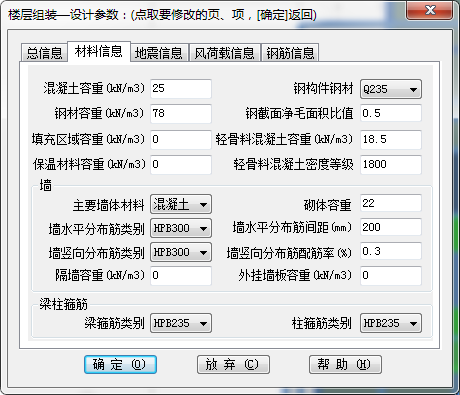填充区域、保温层、隔墙及外挂墙板的容重可由用户根据实际情况及《建筑结构荷载规范》附录A自行设置,程序默认值为0。