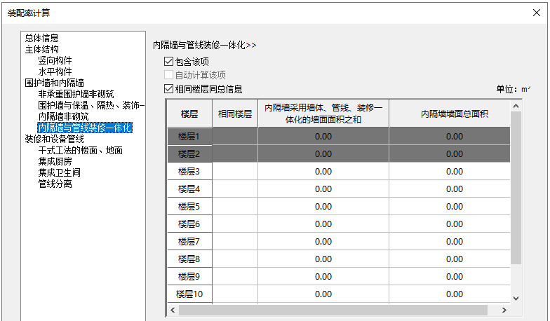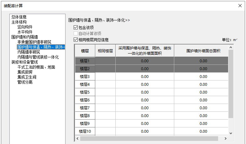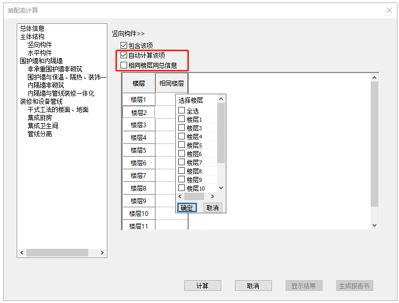 取消勾选预制楼层,则不统计该层预制构件,仅统计结构部分总量计入装配率分母项。