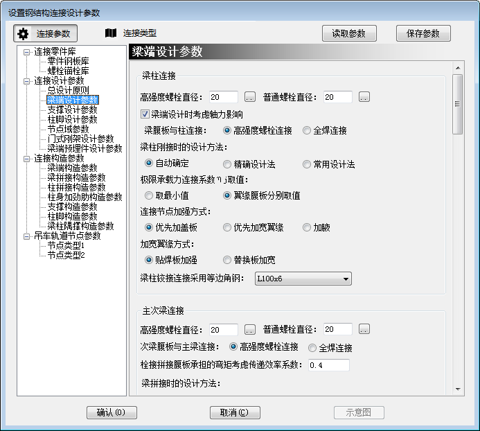高强螺栓及普通螺栓的直径设置:设计时选用的螺栓最小直径。梁柱连接和主次梁连接可以分别设置。