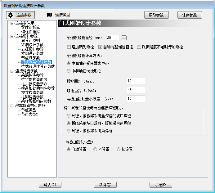 高强螺栓的直径要求用户输入原始的直径,程序在设计时优先采用用户输入的直径类型,当计算不能满足的时候,程序会自动增大螺栓直径。