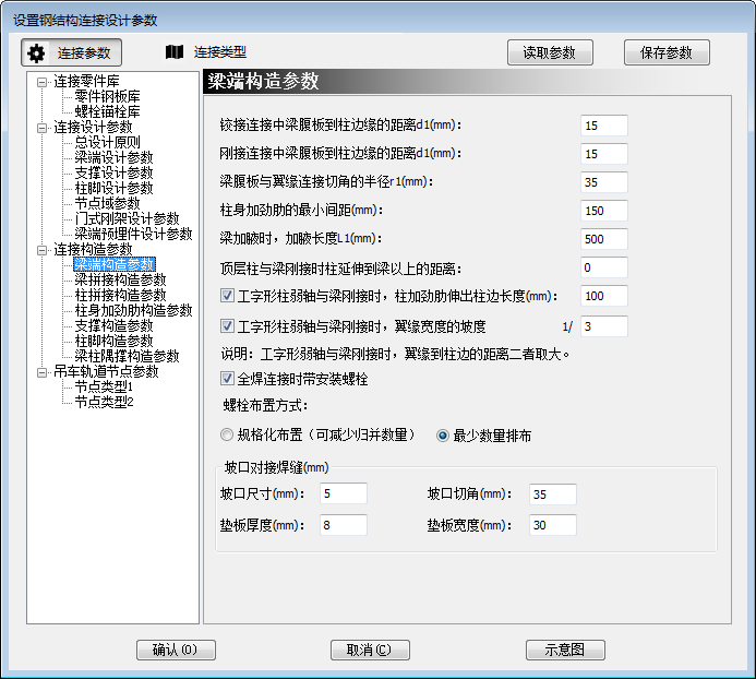1) 梁端构造参数