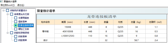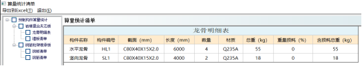 图7.26 龙骨明细表