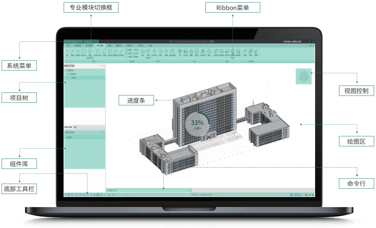 BIMBase建模软件作为工业基础软件,重点提升“大体量模型装载、建模实时渲染、造型效率和精度”等基础技术,定位于“满足数字化建模与集成交付”,打造“多格式大场景模型的集成与浏览”和“多专业高效建模与交付”的双应用场景。