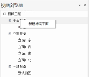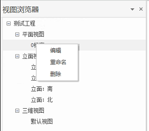 选中“平面视图”节点,右键弹出编辑菜单,如下图,可新建不同标高的平面视图;选中已经创建的平面视图,右键弹出编辑菜单,可对当前平面视图进行编辑、删除、重命名操作。