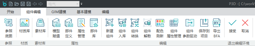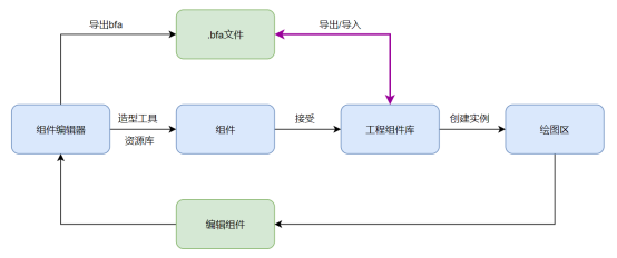 组件是可以保存在本地的.bfa文件,通过组件编辑器功能可以创建组件,组件编辑器是对组件几何体进行编辑的唯一工具。