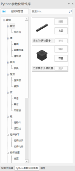 点击参数化组件库管理中的【建筑】,即可打开【建筑】这个库,界面如图所示。