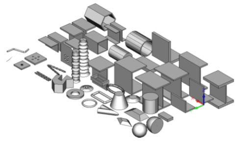 此版本包括了变电站和换流站所需的25种基本图元和18种型钢,在BIMBase中以构件的形式存在,如图所示,详情参见《输变电工程三维设计模型交互规范》。