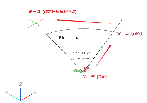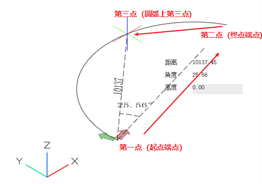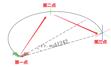 通过依次确定圆弧上三个点的的方式可以完成圆弧绘制: