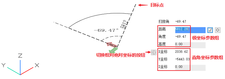 XYZ直角坐标系输入可以切换输入相对坐标或绝对坐标。