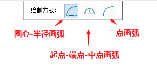 激活圆弧工具后抬头栏可以选择绘制圆弧的方式: