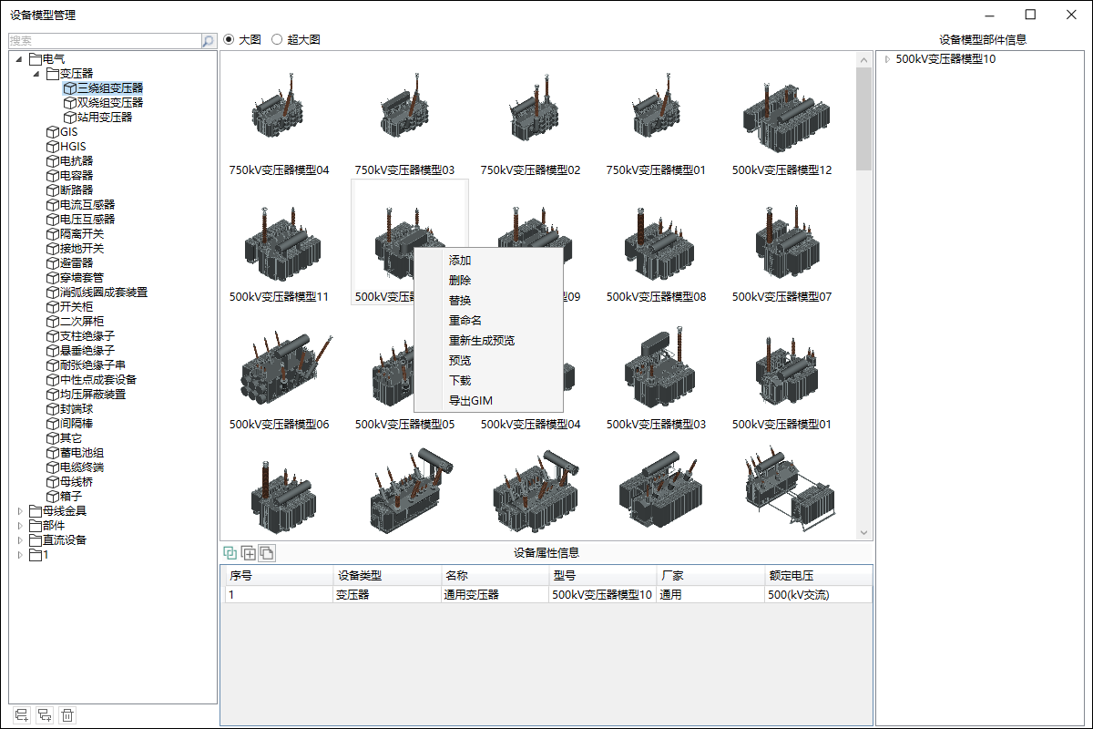 A.右键模型,可对该模型进行删除、替换、重命名、重新生成预览、预览、下载以及导出GIM文件操作