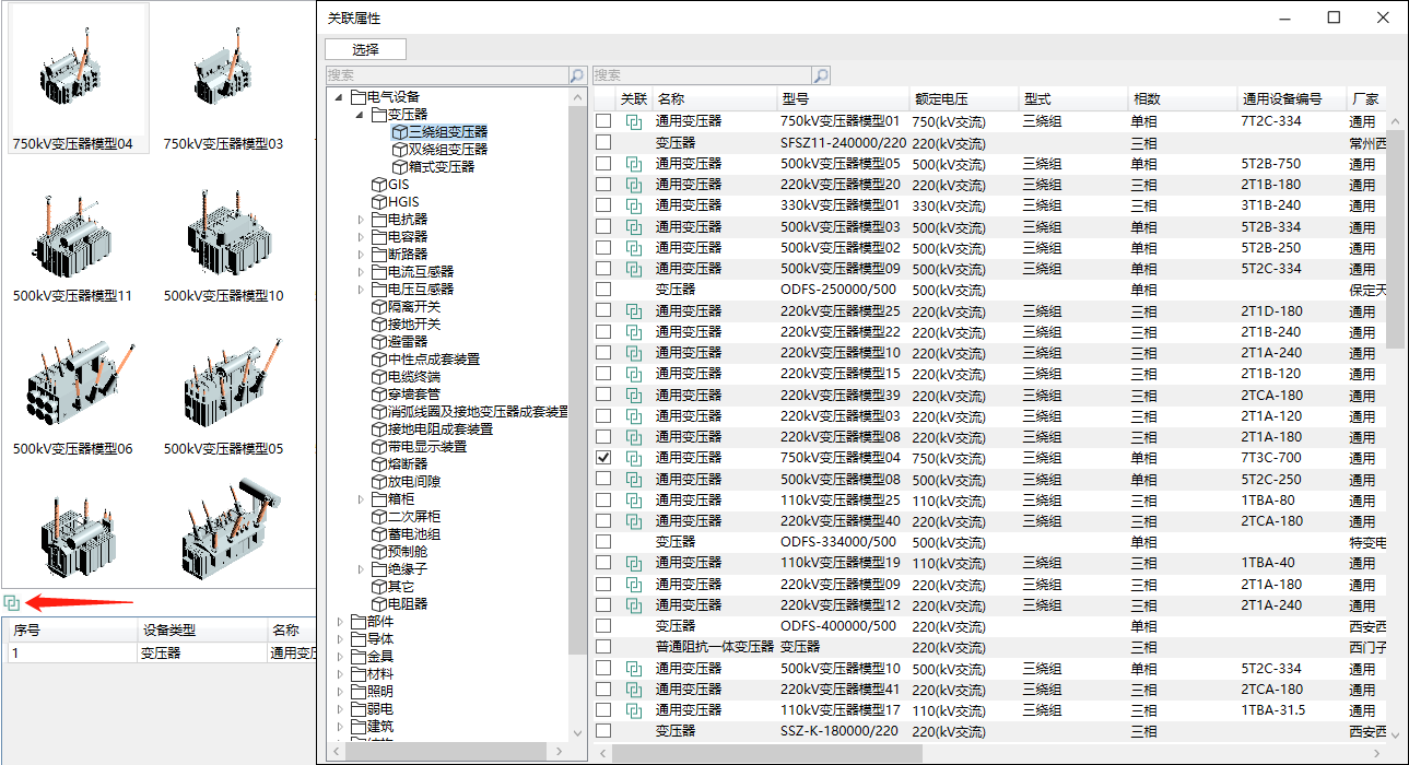 B.选择模型点击关联属性按钮,可在设备属性库中选择属性与该模型关联。