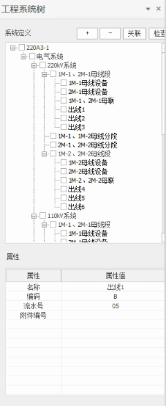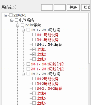 5)检查未进行关联的系统节点:点击“检查”可检查哪些间隔没有进行设备关联,没有关联的红色标识。