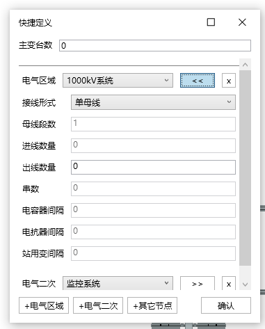 2)系统信息关键数据录入:打开快捷间隔树对话框,选择要创建的电气区域/电气二次/其他节点,如220kv系统,输入装置信息,点击【确定】完成设置,可添加多个电气区域,自动生成系统信息。