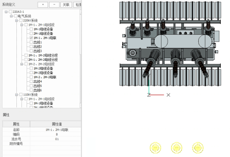 6)查看系统节点关联设备:勾选间隔可定位所选间隔关联的设备;勾选任意一条间隔,即可在当前视图中亮显间隔关联的设备。