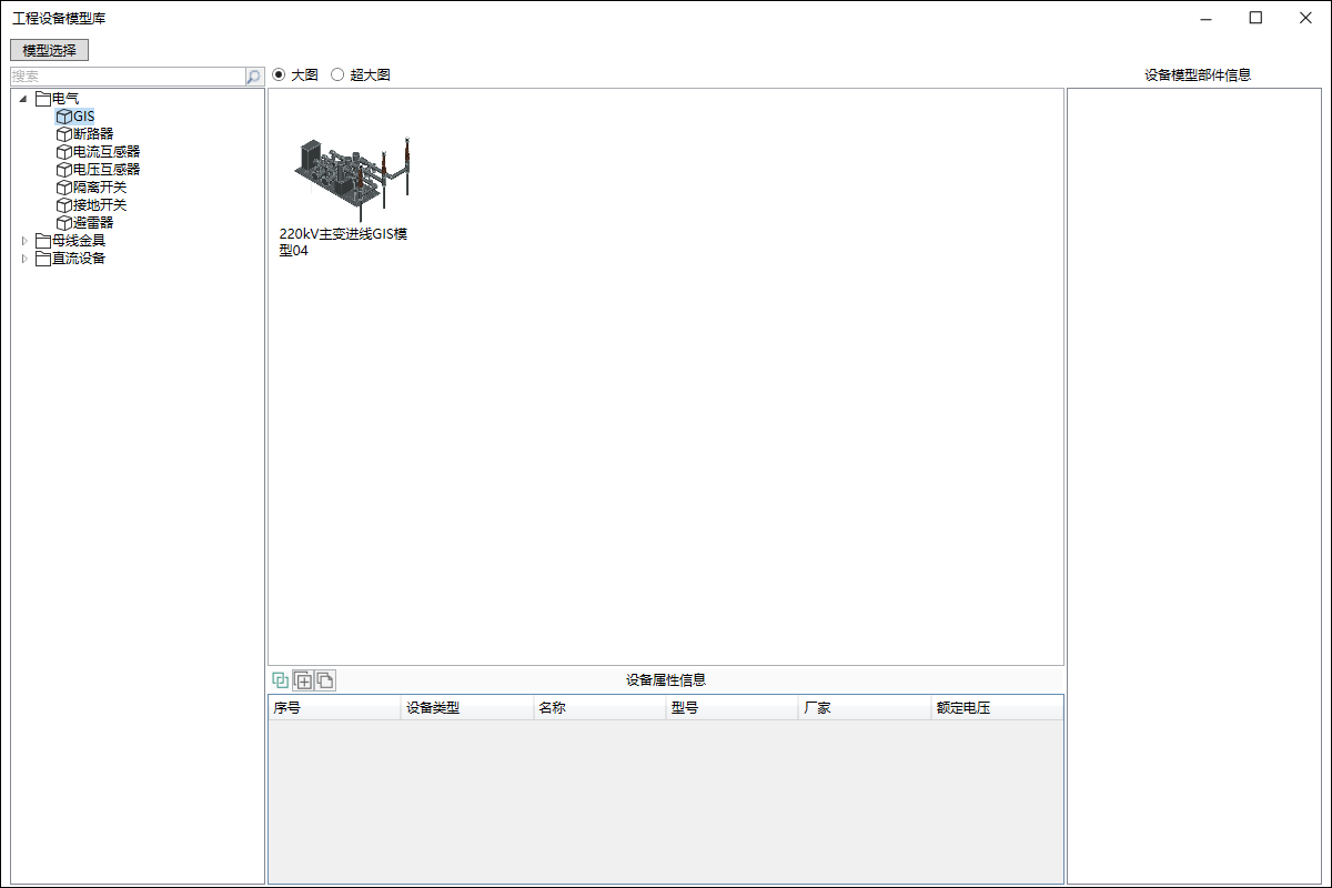 工程设备属性库用来存储当前工程需要用到的设备模型,提供模型的管理、存储、预览功能;