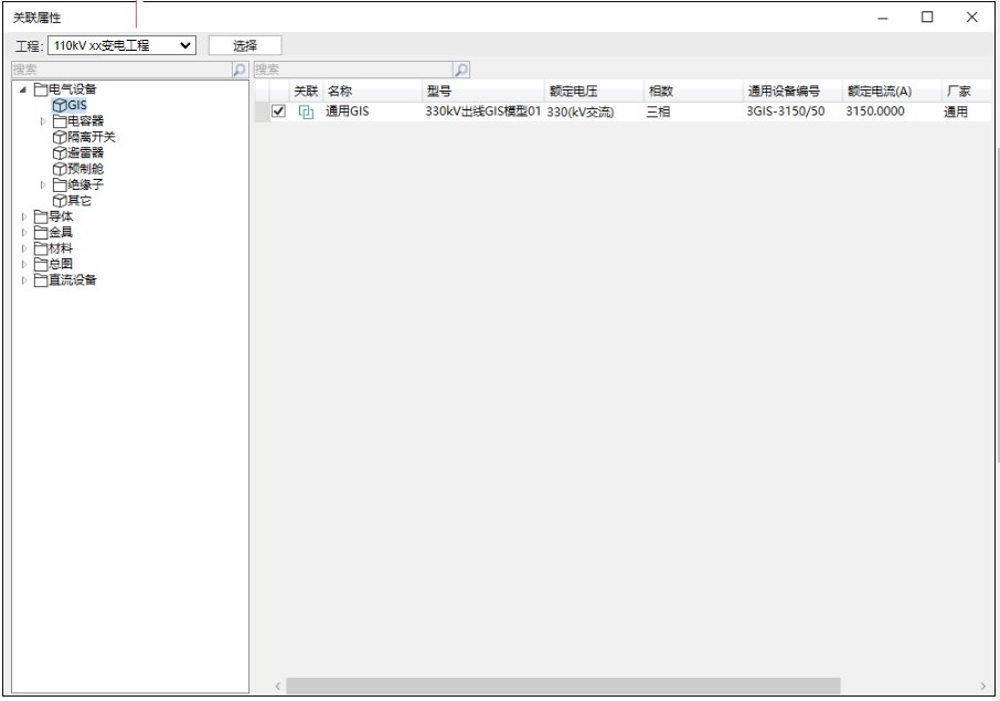 (2)工程模型库与属性关联,支持选择公共设备属性库或其他工程库属性关联,关联的属性自动选型到当前工程库;