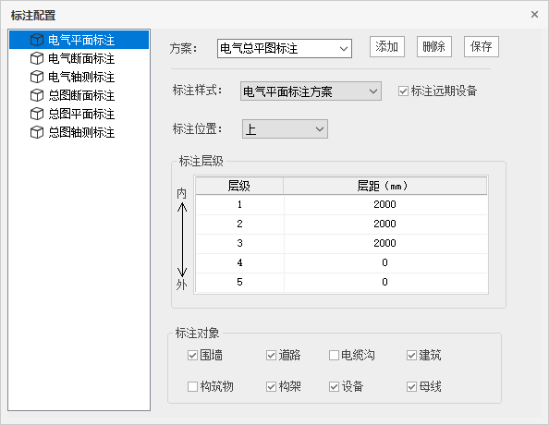 用于配置当前工程出图时的标注方案、标注样式、标注层级及标注对象。