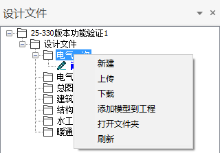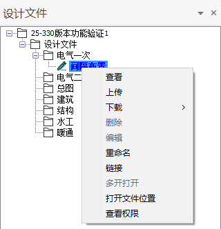 (1)点击协同管理-设计文件,在左侧弹出设计管理页签,以树状节点进行管理