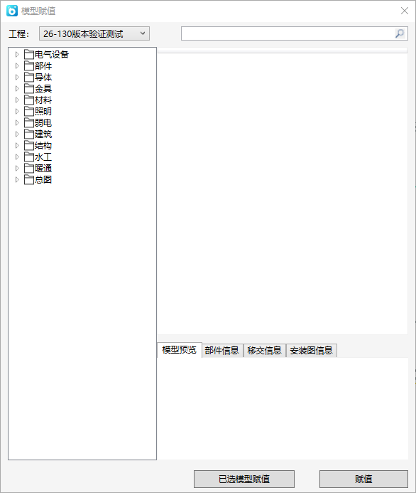 (1) 点击电气设计-模型赋值,弹出模型赋值对话框: