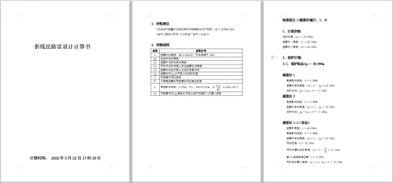 可完成折线法、滚球法防雷计算,生成防雷保护范围及计算书。