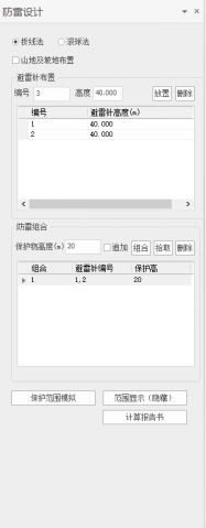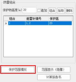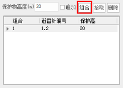 (6)设定被保护物高度,点击”组合”按钮形成一条防雷组合记录: