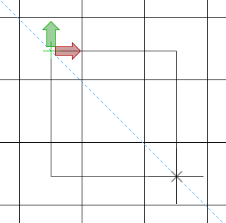 两点偏移模式:点击接地网线上一点作为避让起点,再次点击同一条直线段上的另一点完成避让操作(避让方向为“接地极左侧”、“接地极右侧”时可实时动态预览避让效果),下图为接地极左侧避让方向示意;