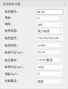 可完成单根电缆,三相电缆一字型、品字形绘制。