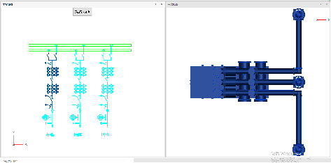 打开一张已经编码的主接线/三维模型,在数据联动中点击数据导航,进入导航状态,点击主接线/三维模型上的某个图例/设备,如果点击的图例/设备在三维模型/主接线图纸中存在相同设备编码的构件,则自动加载三模模型/主接线图纸,并高亮定位到具体的构件。