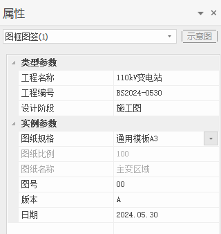 b)属性栏可修改类型参数与实例参数的值,驱动图签信息的联动。