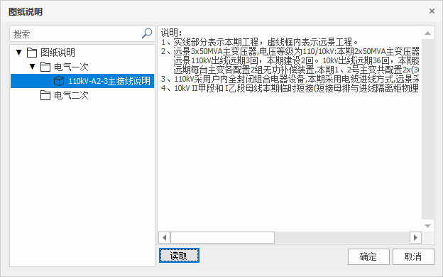 点击图纸说明,在图纸说明对话框中,读取图纸说明方案或输入该图纸需要填写的说明