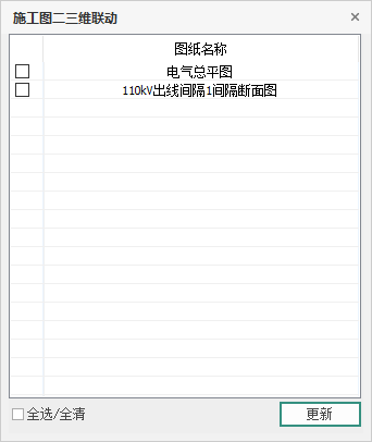 (3)勾选需要更新的图纸,点击更新,对应图纸节点的出图内容完成更新
