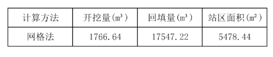 点击按钮后,选择场地地形,选择站区围墙区域,输出计算结果,如下图: