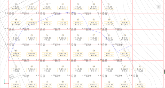 (2)点击“绘制表格”,可以将计算结果以表格的方式绘制到图形中,同时网格中,每个单元格中的挖填量也会绘制到相应的网格单元,结果如图所示。