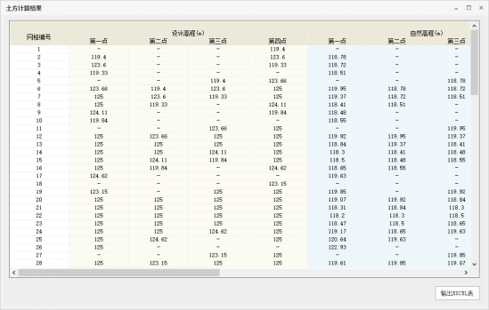 (2)点击【输出EXCEL表】,可将网格法土方表格内容输出为Excel文件。