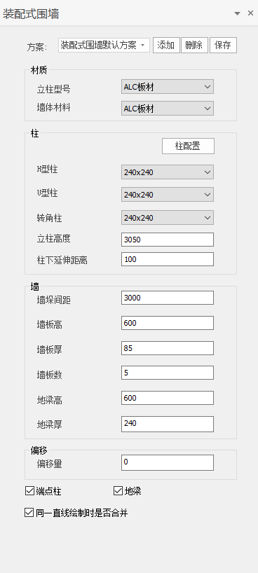 立柱型号和墙体材料分别读取【协同专业-设备属性库】中“总图-围墙-柱”及“总图-围墙-墙身”表中的名称列。