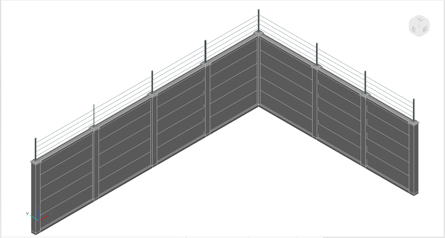 (2)电子围栏分为手动绘制和基于围墙绘制两种方式。在左侧的界面中,设定围栏参数,手动绘制时,在模型中的目标位置按提示进行布置操作。基于围墙绘制时,框选图面中已布置的装配式围墙或砖砌式围墙模型,自动识别围墙的墙柱,在墙柱顶部生成电子围栏模型。