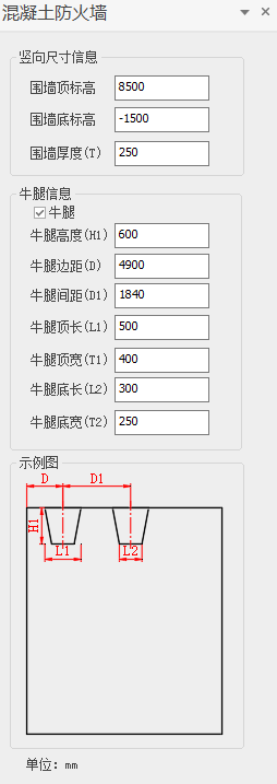 (1)点击【混凝土防火墙】按钮打开界面同时激活布置工具。