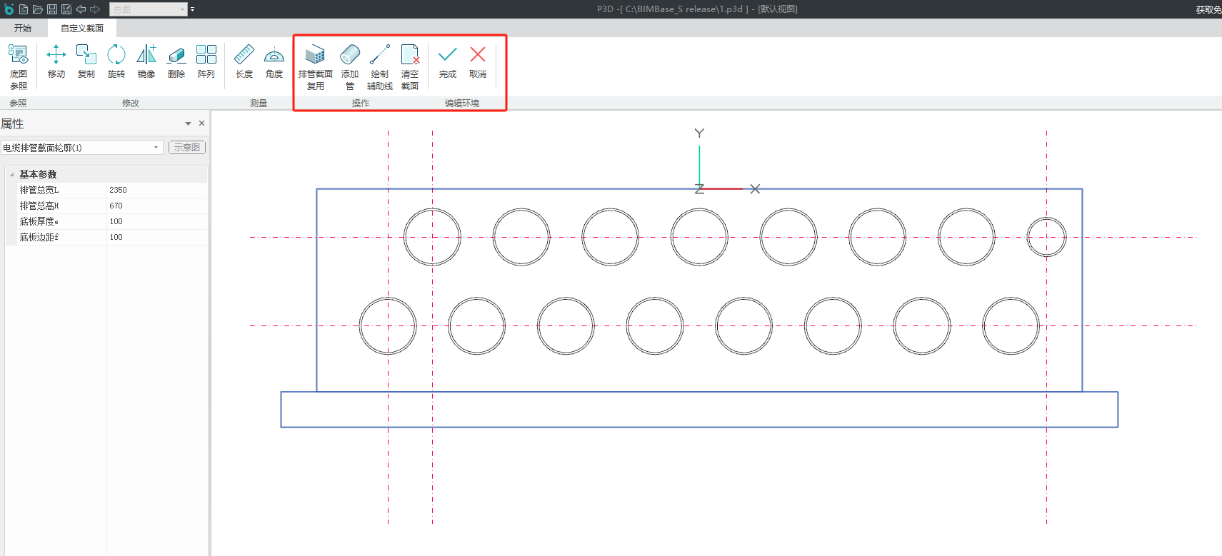 点击【添加自定义截面】,将弹出对话框,输入排管名称,点击确定后,进入自定义截面环境中;