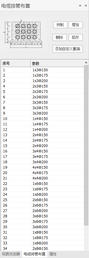 点击【预制】可以将软件预存的电缆排管截面添加到对话框中。