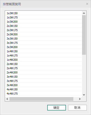 点击【排管截面复用】,弹出如下图对话框,可选择已存储的截面样式,将样式复用到当前环境中;