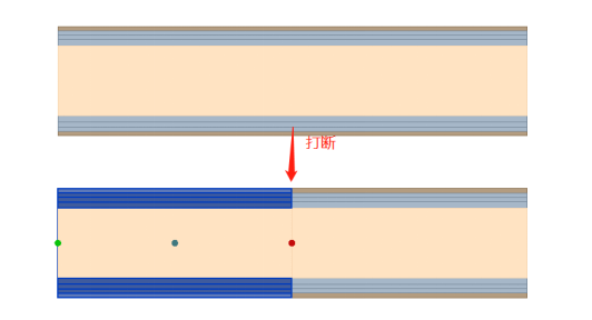 布置好的排水沟直通,可在鼠标点击位置将其打断;方便编辑排水沟截面尺寸及标高等属性。