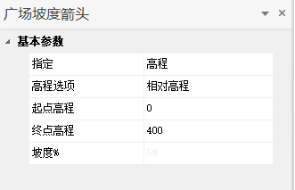 起点/终点高程/坡度:设定当前广场,随箭头方向的起点/终点高程/坡度。