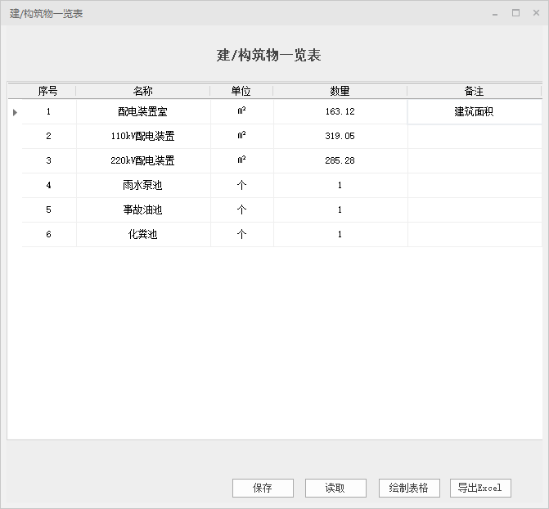 (5)点击【导出EXCEL】,可将建/构筑物一览表内容输出为Excel文件。