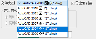 ● CAD版本,下拉选择导出CAD图纸的版本。