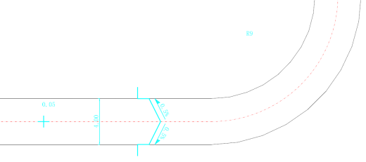 对图纸中的道路进行标注,标注内容包括:路宽、转弯半径、坡度以及标高;