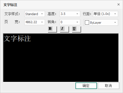 (3)文字标注样式配置,可选择文字样式、高度、行距、页宽、角度、颜色。