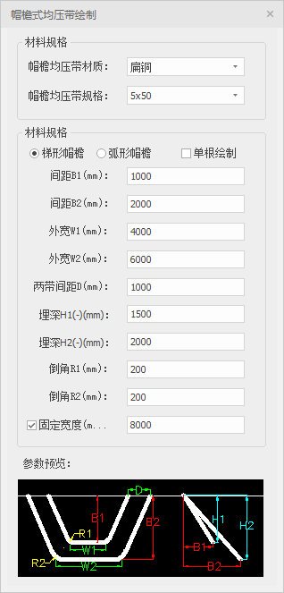 (2)设定均压带绘制参数,点击起始点再点击终止点(或者固定宽度点击放置点),点击确定绘制方向,自动生成帽檐式均压带。